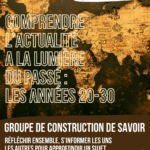 Comprendre l’actualité à la lumière du passé : les années 20-30. Le Réseau d’échanges réciproques de savoirs c’est aussi, construire ensemble du savoir!! A la demande d’adhérents, de participants du Réseau d’échanges réciproques de savoirs, des citoyens décident de réfléchir ensemble, ils échangent des points de vue et des expériences, se documentent, partagent leurs connaissances, s’informent les uns les autres pour approfondir un sujet. Un petit groupe a choisi de se pencher sur les évènements et la société des années 20-30 afin de comprendre les mécanismes et situations qui ont conduit une population à accepter les changements qui ont permis l’arrivée du fascisme.