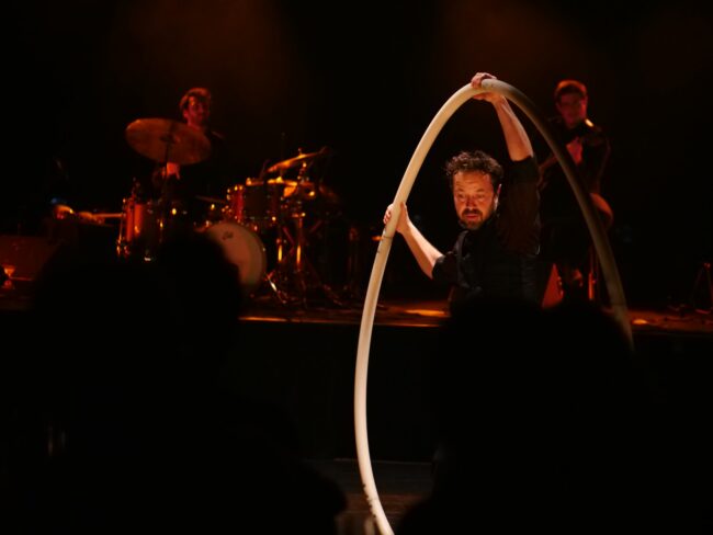 La compagnie Manie vous invite à découvrir un spectacle où cirque et musique ne font qu’un. Sur scène, deux artistes de cirque, Karen Bourre et Vincent Regnard, accompagnés du batteur Adrien Desse et du pianiste Antonin Néel, mêlent jonglage, magie, roue Cyr et acrobaties au rythme d’une musique énergique teintée de jazz.